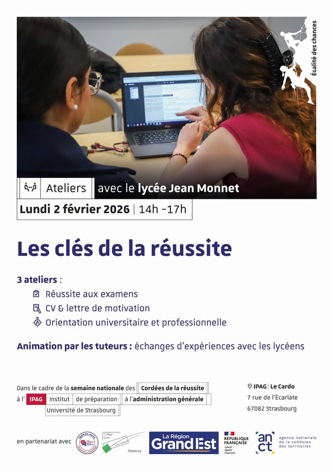 Dans le cadre de la semaine nationale des Cordées de la réussite, nous accueillerons les élèves du lycée Jean Monnet le lundi 2 février 2026.