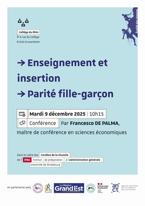 Dans le cadre des Cordées de la réussite, Francesco DE PALMA, maître de conférences en Sciences économiques à l’Université de Strasbourg se rendra au Collège du Rhin le mardi 9 décembre 2025 à 10h15.